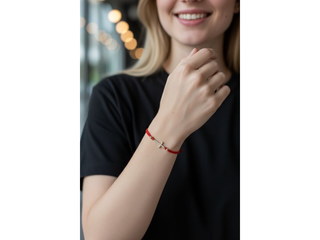 Jemný červený šnúrkový náramok dopĺňa krížik z 14-karátového bieleho zlata (585/1000) – nadčasový symbol viery, nádeje a duchovnej sily. Kombinácia minimalistického bieleho zlata a výraznej červenej šnúrky pôsobí moderne a zároveň nesie ochranný význam, ktorý podľa tradície odháňa negatívnu energiu.