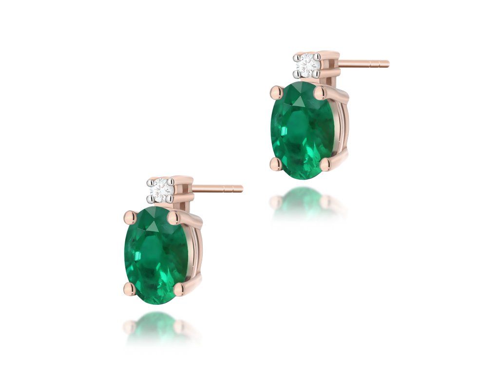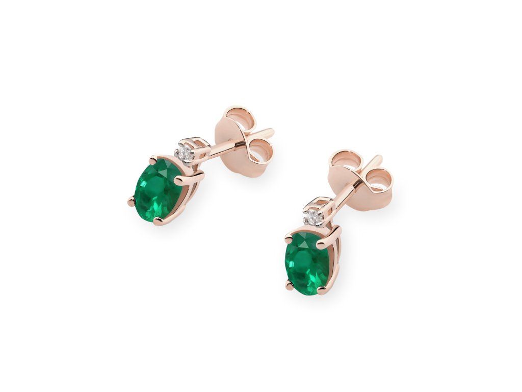 Nádherné diamantové náušnice z ružového zlata so smaragdom a zapínaním na puzetu očaria svojou jemnosťou, eleganciou a romantickým nádychom. Perfektný šperk na každý deň aj výnimočné príležitosti.
