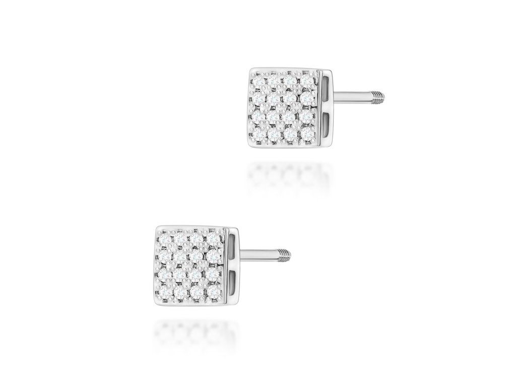 Diamantové náušnice na balónik z bieleho zlata s moderným štvorcovým motívom, osadeným drobnými diamantmi. Jemný, elegantný a nadčasový šperk vhodný na každodenné nosenie aj výnimočné príležitosti.