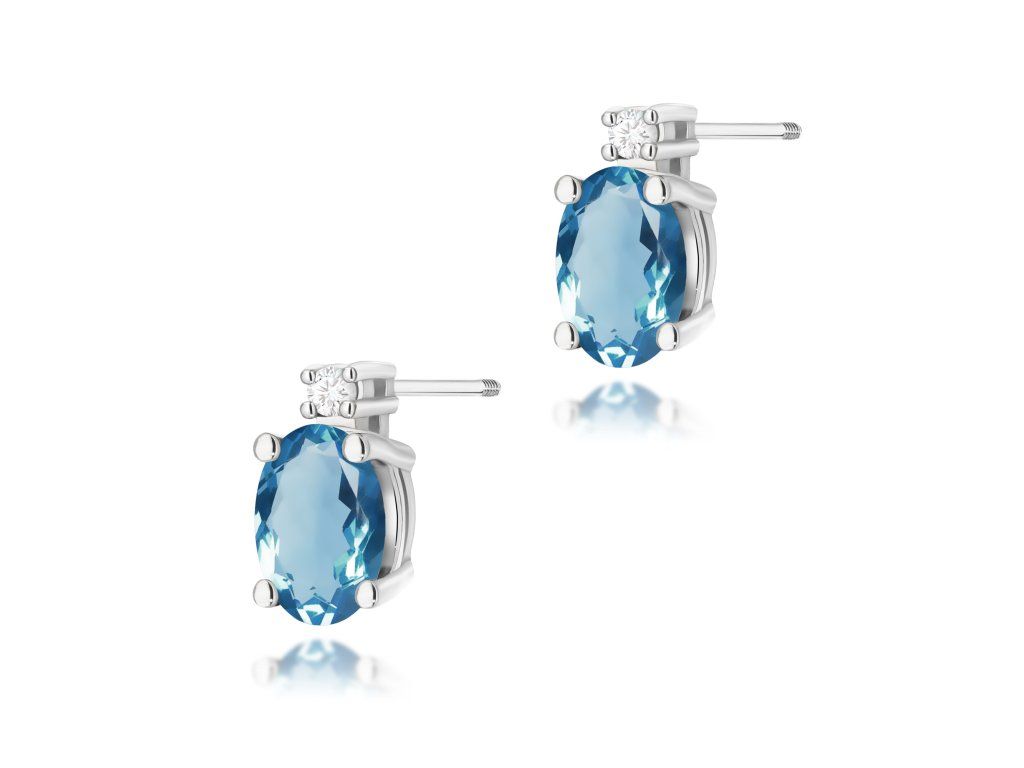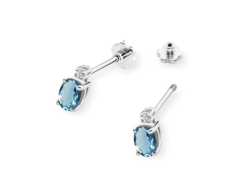 Nádherné diamantové náušnice z bieleho zlata s topásom London Blue a zapínaním na balónik očaria svojou jemnosťou, eleganciou a romantickým nádychom. Perfektný šperk na každý deň aj výnimočné príležitosti.