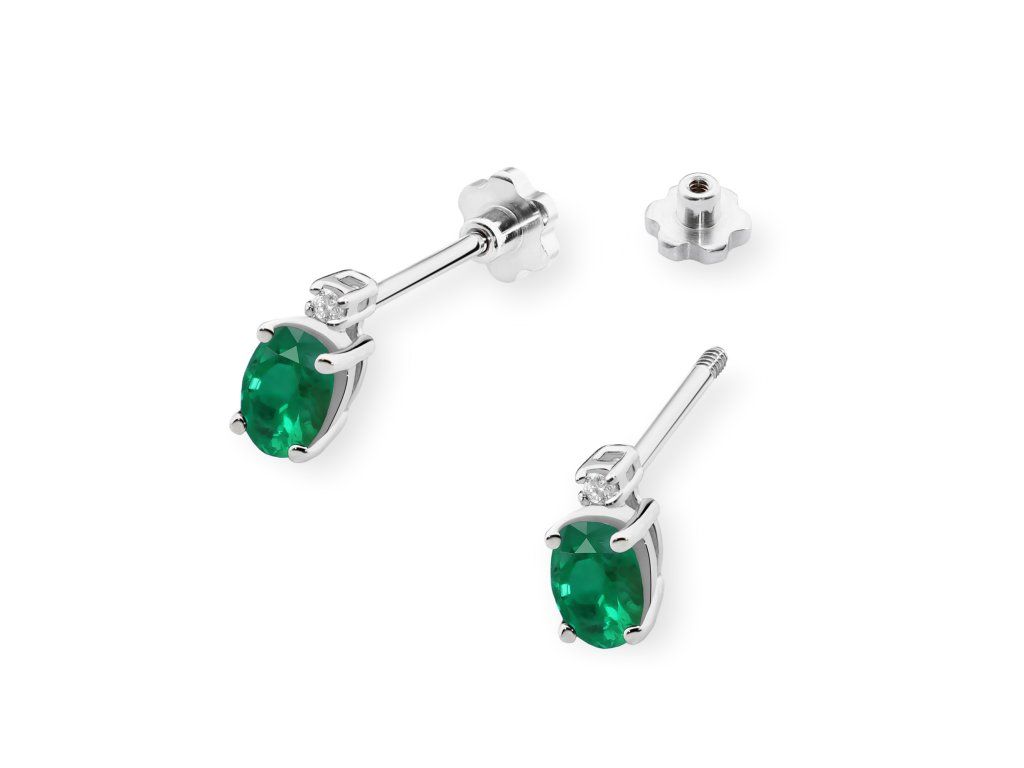 Nádherné diamantové náušnice z bieleho zlata so smaragdom a zapínaním na balónik očaria svojou jemnosťou, eleganciou a romantickým nádychom. Perfektný šperk na každý deň aj výnimočné príležitosti.