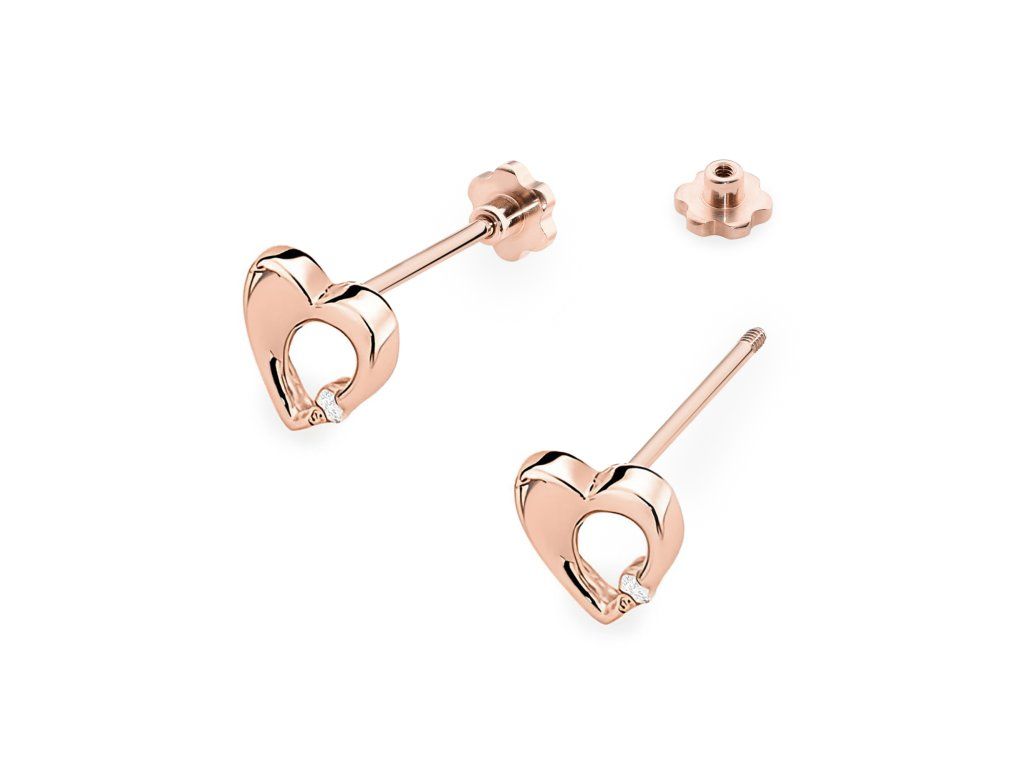 Diamantové náušnice z ružového zlata na balónik v jemnom tvare srdca. Elegantný a romantický šperk, ktorý je vhodný na každodenné nosenie aj ako nežný darček z lásky.