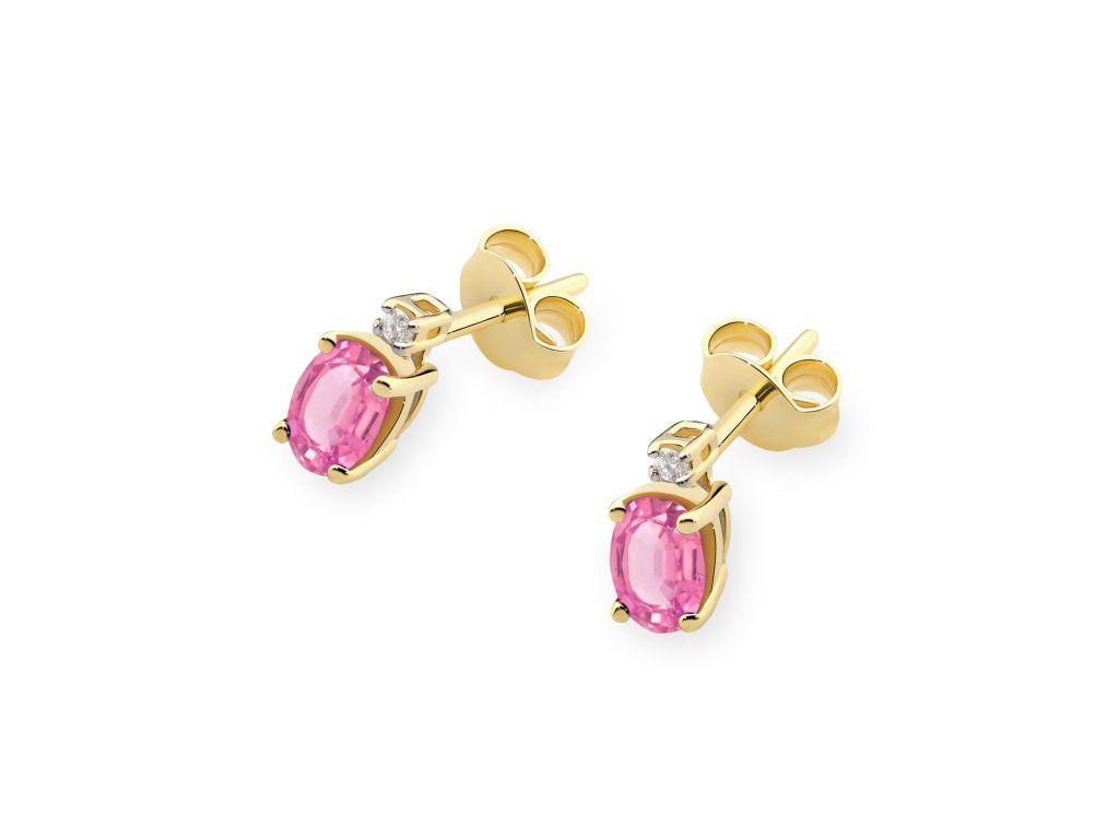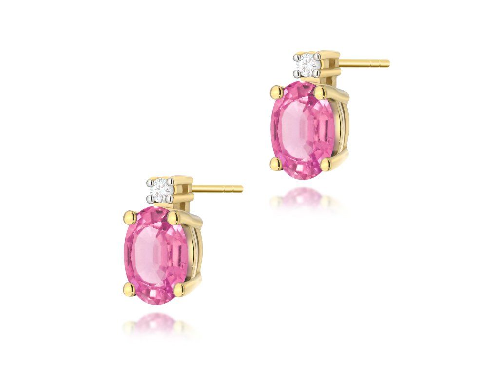 Nádherné diamantové náušnice zo žltého zlata s ružovým topásom zapínaním na puzetu očaria svojou jemnosťou, eleganciou a romantickým nádychom. Perfektný šperk na každý deň aj výnimočné príležitosti.