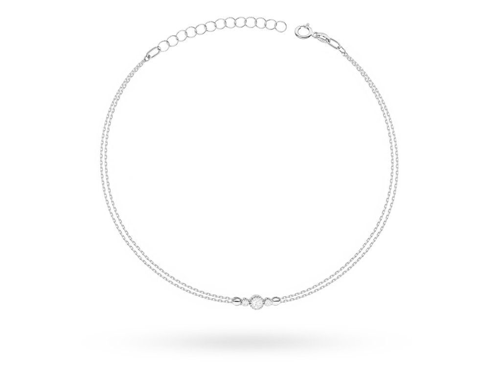 Luxusný náramok z bieleho 14 ct zlata s diamantmi je stelesnením jemnej elegancie, precízneho spracovania a nadčasovej krásy. Jeho subtilný, no zároveň výnimočný dizajn pôsobí veľmi sofistikovane a vynikne pri každom pohybe ruky. Trblietavé diamanty dodávajú šperku noblesu a exkluzívny charakter, zatiaľ čo biele zlato podčiarkuje jeho moderný a čistý vzhľad.