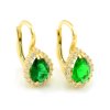 Náušnice zo žltého zlata veľké slzy so zeleným zirkónom. Dominantou náušníc je krásny zelený zirkón v tvare slzy, obklopenej čírymi zirkónmi. Náušnice pôsobia veľmi noblesne a očarujúco.