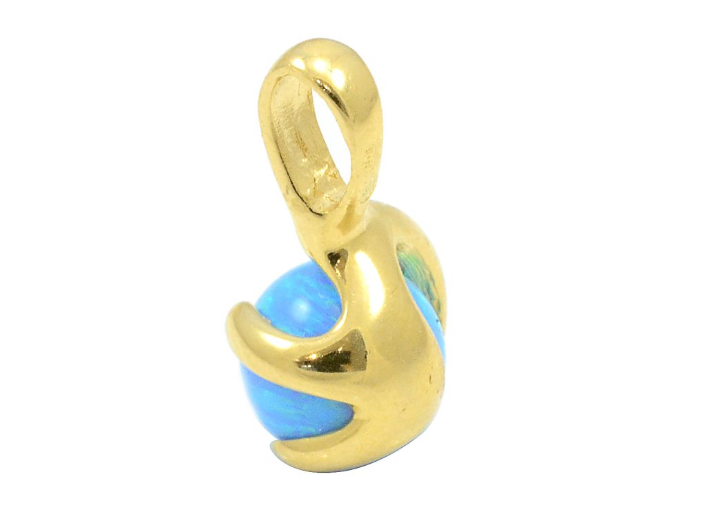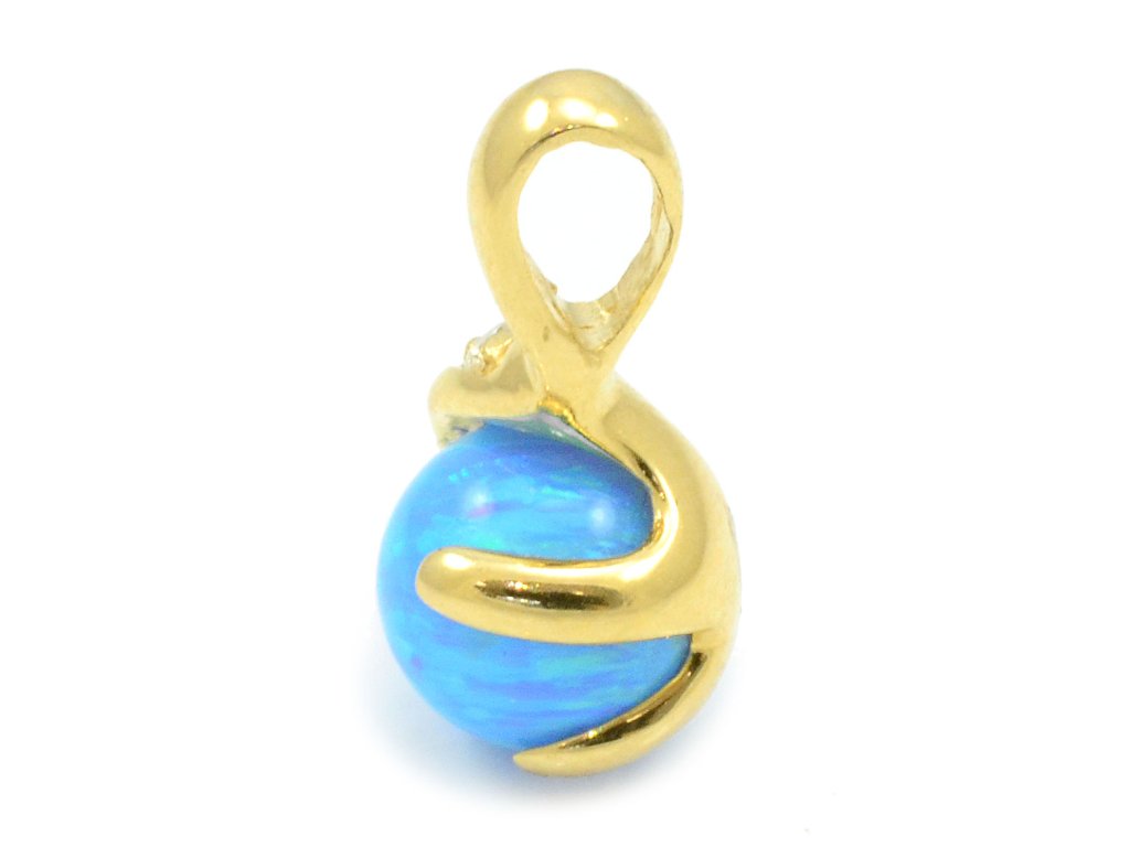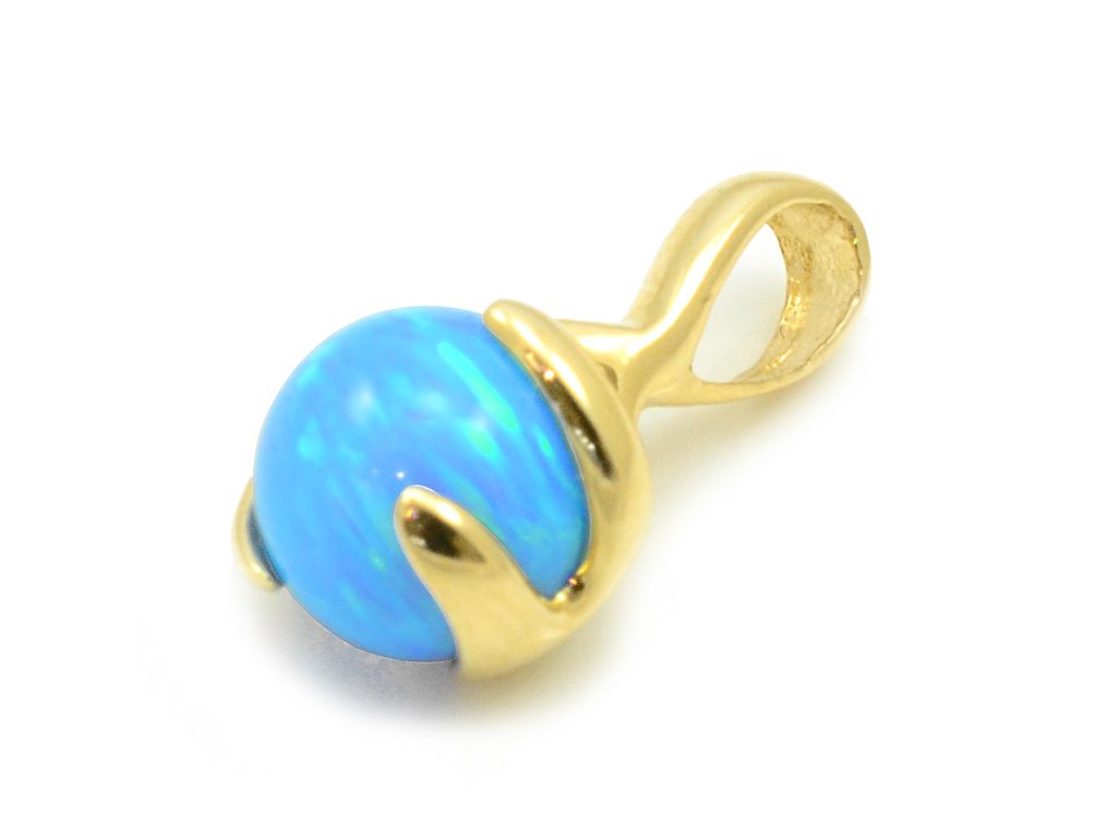 Prívesok zo žltého zlata s prírodným modrým opálom 8 mm a troma zirkónmi.