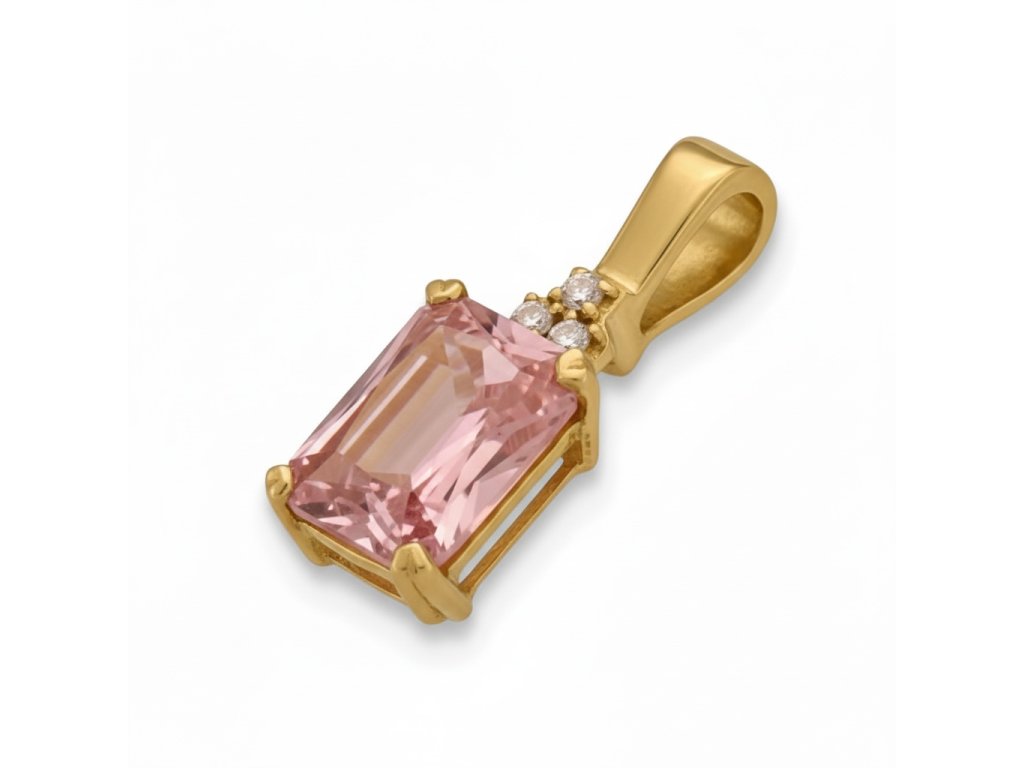 Elegantný zlatý prívesok je stelesnením jemnosti, luxusu a nadčasovej krásy. Precízne spracovanie, ušľachtilý lesk zlata a vkusný dizajn doplnený o ružový zirkón vytvára harmonický šperk, ktorý podčiarkne ženskosť a osobitý štýl svojej nositeľky. Je výnimočným doplnkom na bežné dni aj výnimočné príležitosti a zároveň krásnym darom s hlbokou hodnotou a trvácnosťou.
