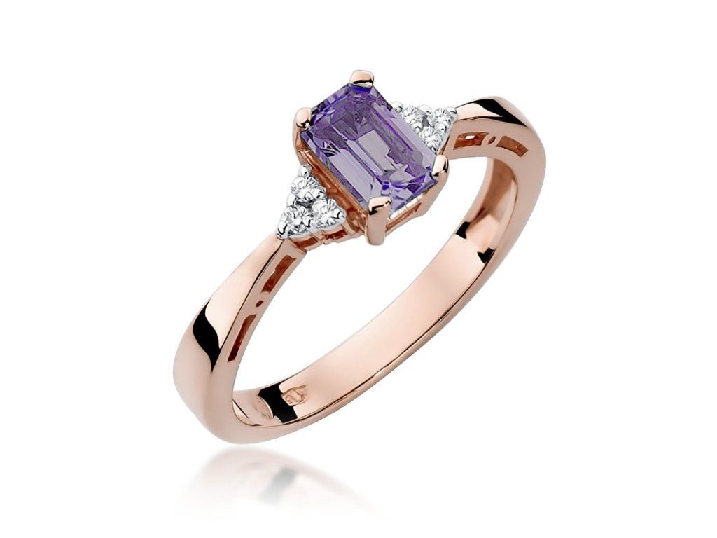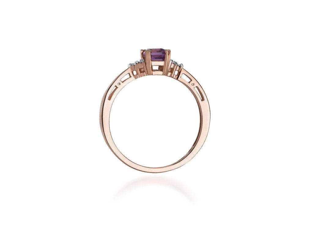 Prsteň s ametystom z ružového zlata (585/1000) s kameňom 0,50 ct, doplnený 6 diamantmi. Elegantný a jemne výrazný šperk.
