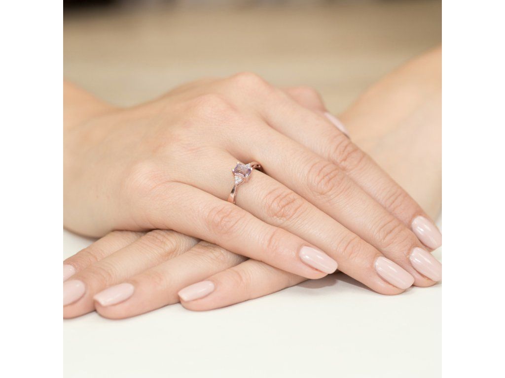 Jemný prsteň z pravého ružového zlata zdobí ametyst s hmotnosťou 0,50 ct, ktorý očarí svojou nežnou fialovou farbou a krásnym leskom. Teplý odtieň ružového zlata vytvára harmonický kontrast s farbou kameňa a dodáva šperku romantický, ženský charakter.