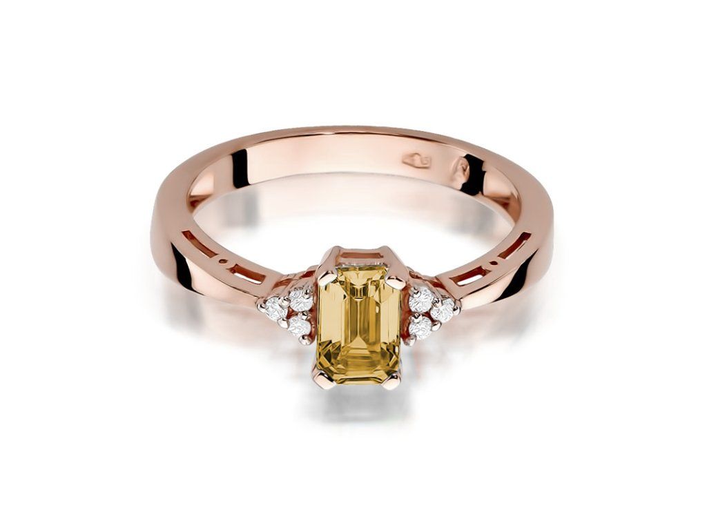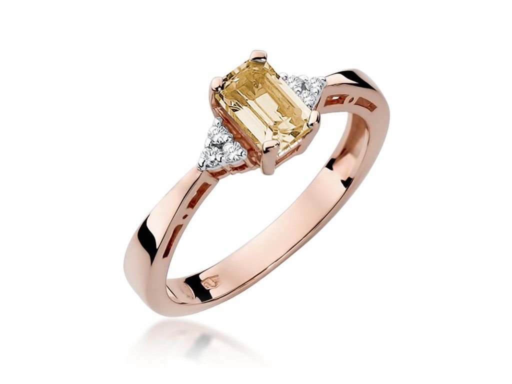 Prsteň s citrínom z ružového zlata (585/1000) s kameňom 0,60 ct, doplnený diamantmi. Elegantný šperk s teplým farebným tónom.