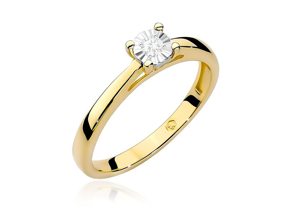 Prsteň s laboratórnym diamantom zo žltého zlata (585/1000) s kameňom 0,08 ct. Jemný a moderný šperk.