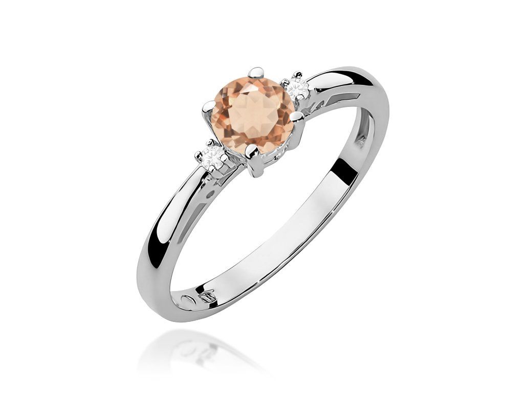 Elegantný prsteň z pravého bieleho zlata zdobí morganit s hmotnosťou 0,40 ct, ktorý očarí svojou jemnou broskyňovo-ružovou farbou a krásnym leskom. Tento nežný drahokam pôsobí romanticky a dodáva šperku moderný, ženský charakter.