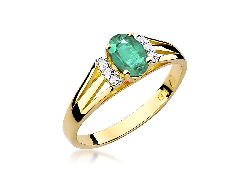 Prsteň so smaragdom zo žltého zlata (585/1000) s kameňom 0,40 ct. Elegantný šperk s výraznou farbou.