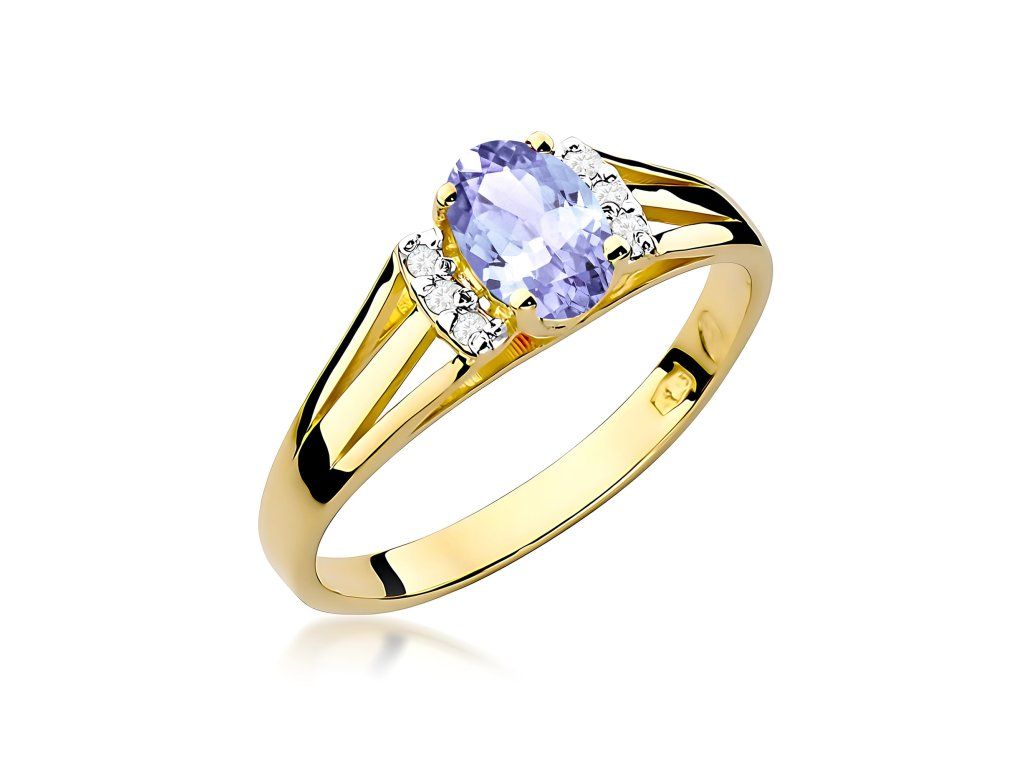 Prsteň s tanzanitom zo žltého zlata (585/1000) s kameňom 0,40 ct, doplnený 6 diamantmi. Elegantný šperk s výnimočnou farbou.
