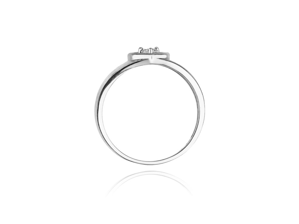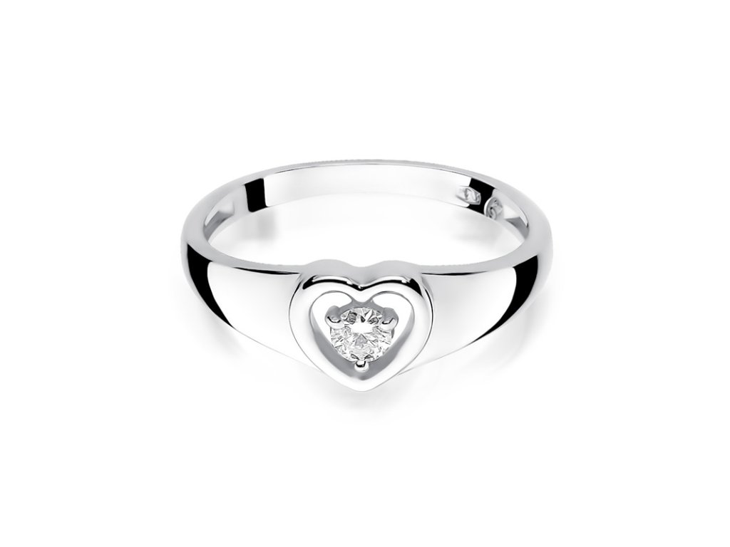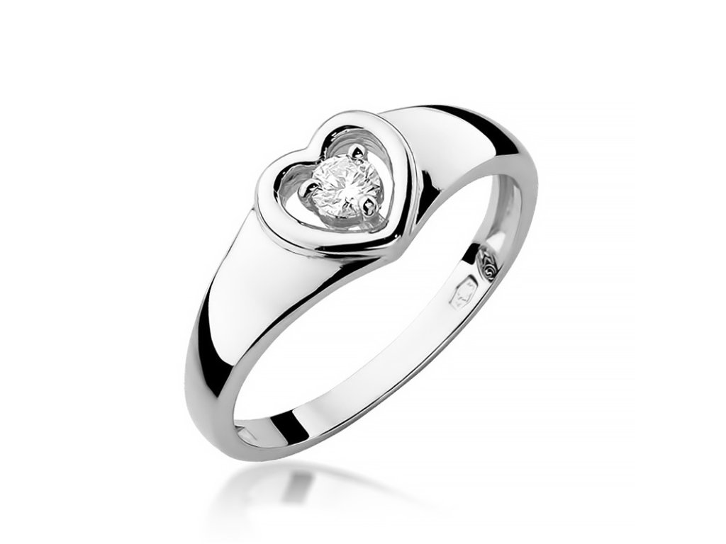 Diamantový prsteň v tvare srdca z bieleho zlata (585/1000) s diamantom s hmotnosťou 0,10 ct. Jemný a romantický šperk.