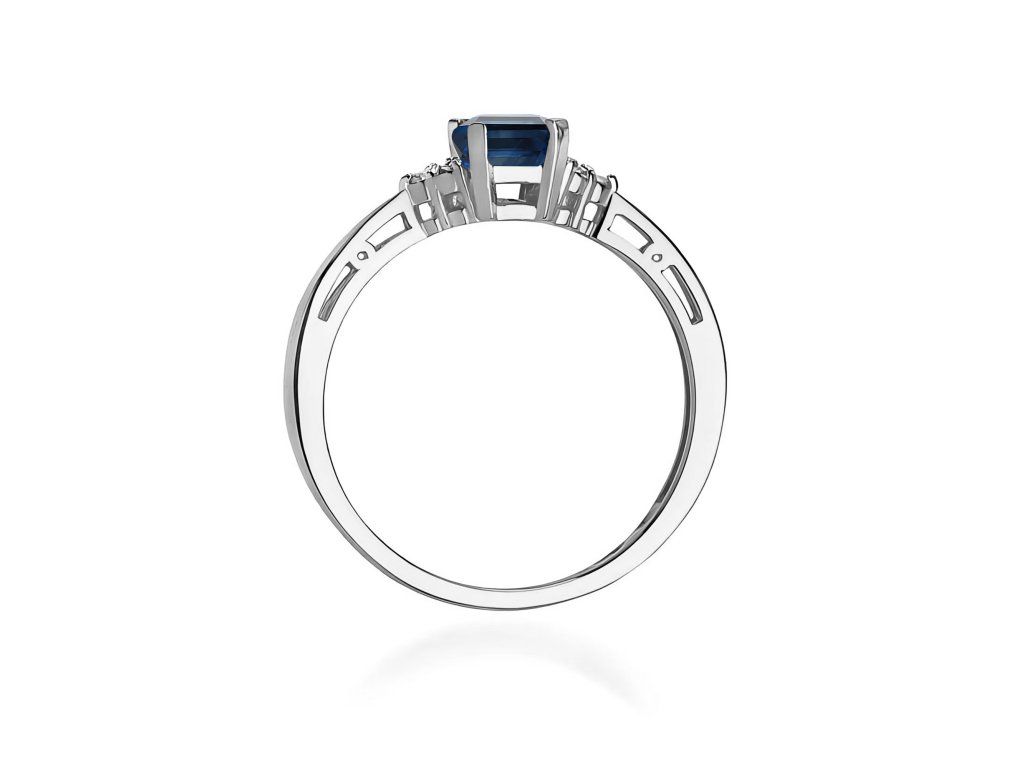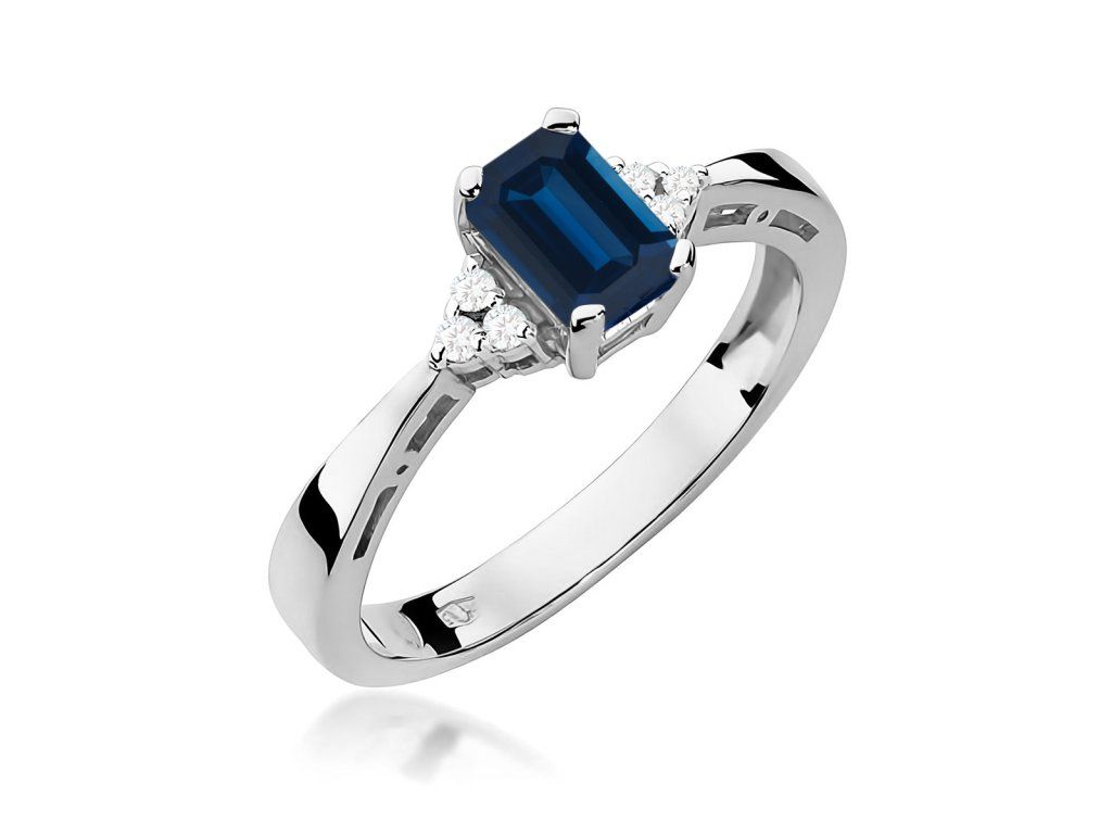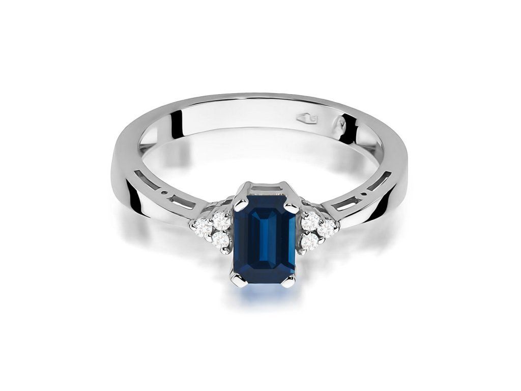 Prsteň so zafírom z bieleho zlata (585/1000) s kameňom 0,60 ct, doplnený diamantmi. Elegantný a luxusný šperk.
