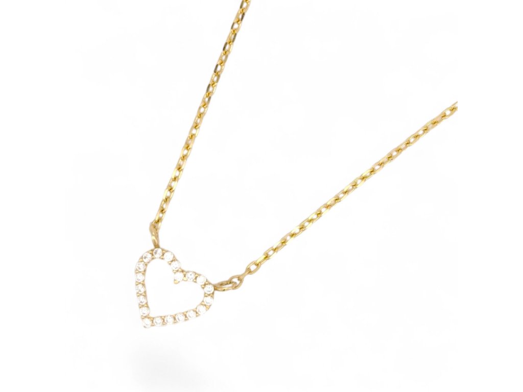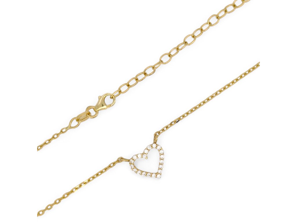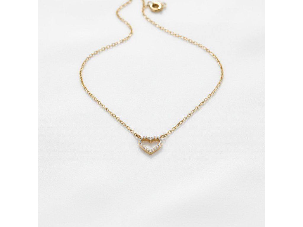 Zlatý náhrdelník zo 14-karátového zlata (585/1000) s príveskom v tvare srdca zdobeným čírymi zirkónmi .