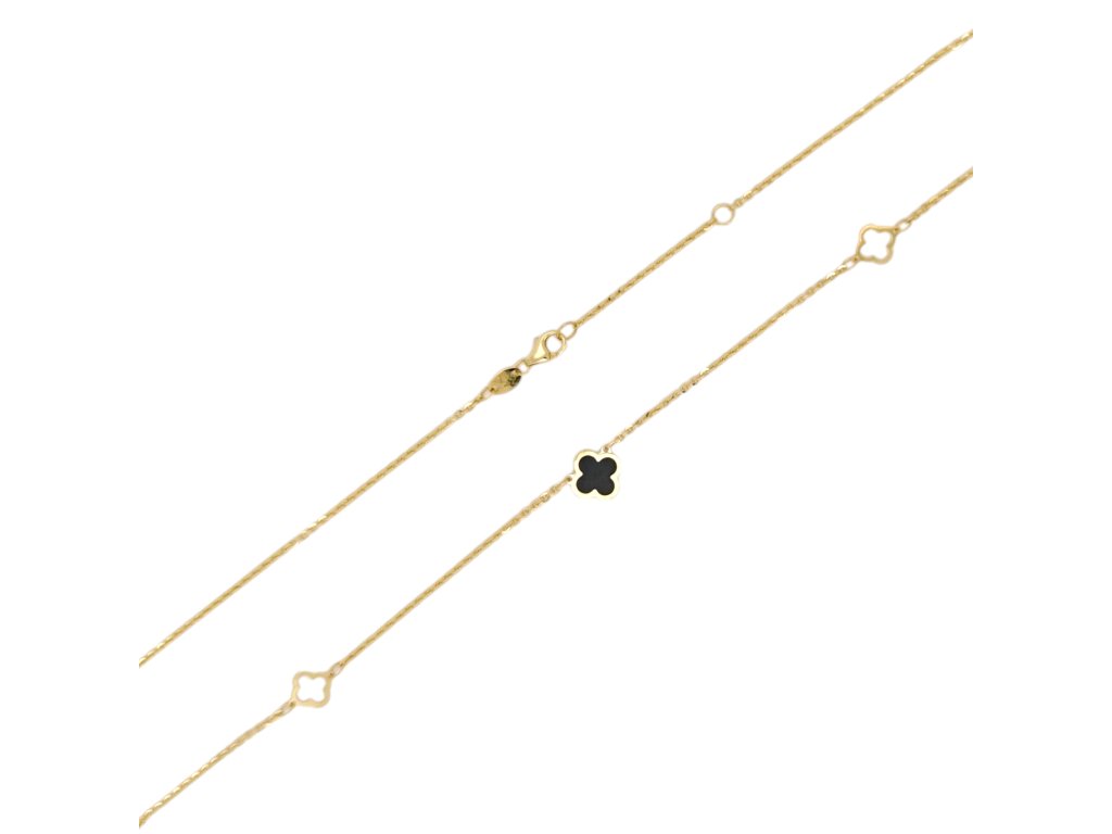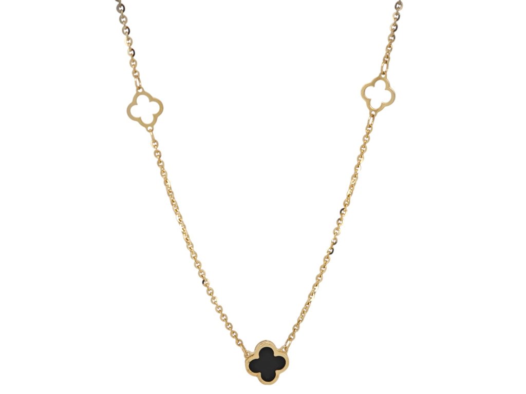 Zlatý náhrdelník zo 14-karátového zlata (585/1000) so štvorlístkom z čierneho onyxu.