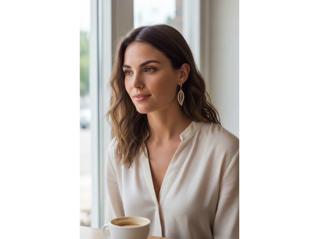 Jemné náušnice inšpirované prírodou zaujmú precízne spracovaným motívom lístka, ktorý pôsobí ľahko a vzdušne. Lesklý povrch v kombinácii s detailnou štruktúrou krásne odráža svetlo a dodáva šperku prirodzenú eleganciu.